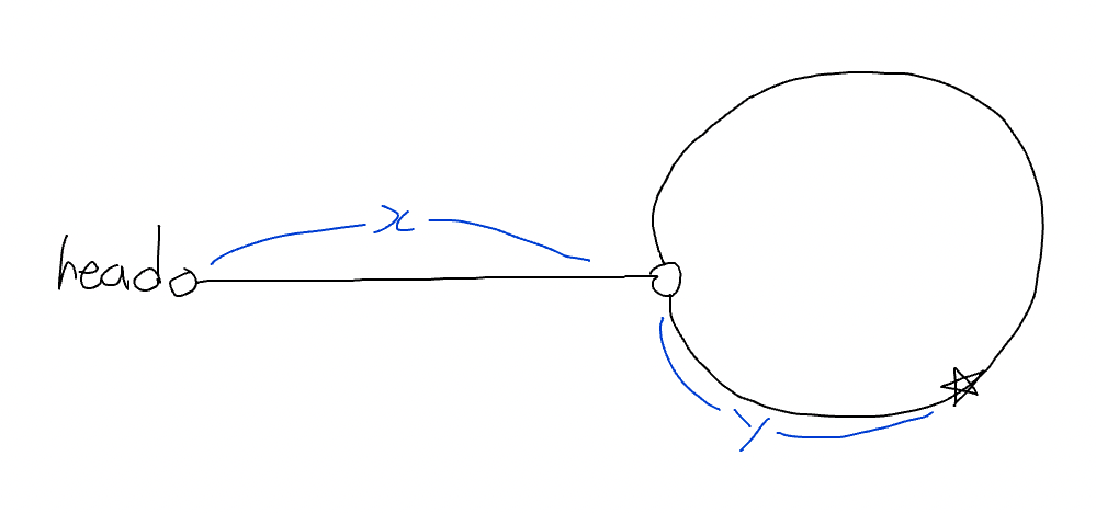 head에서 cycle 시작점까지의 거리를 x