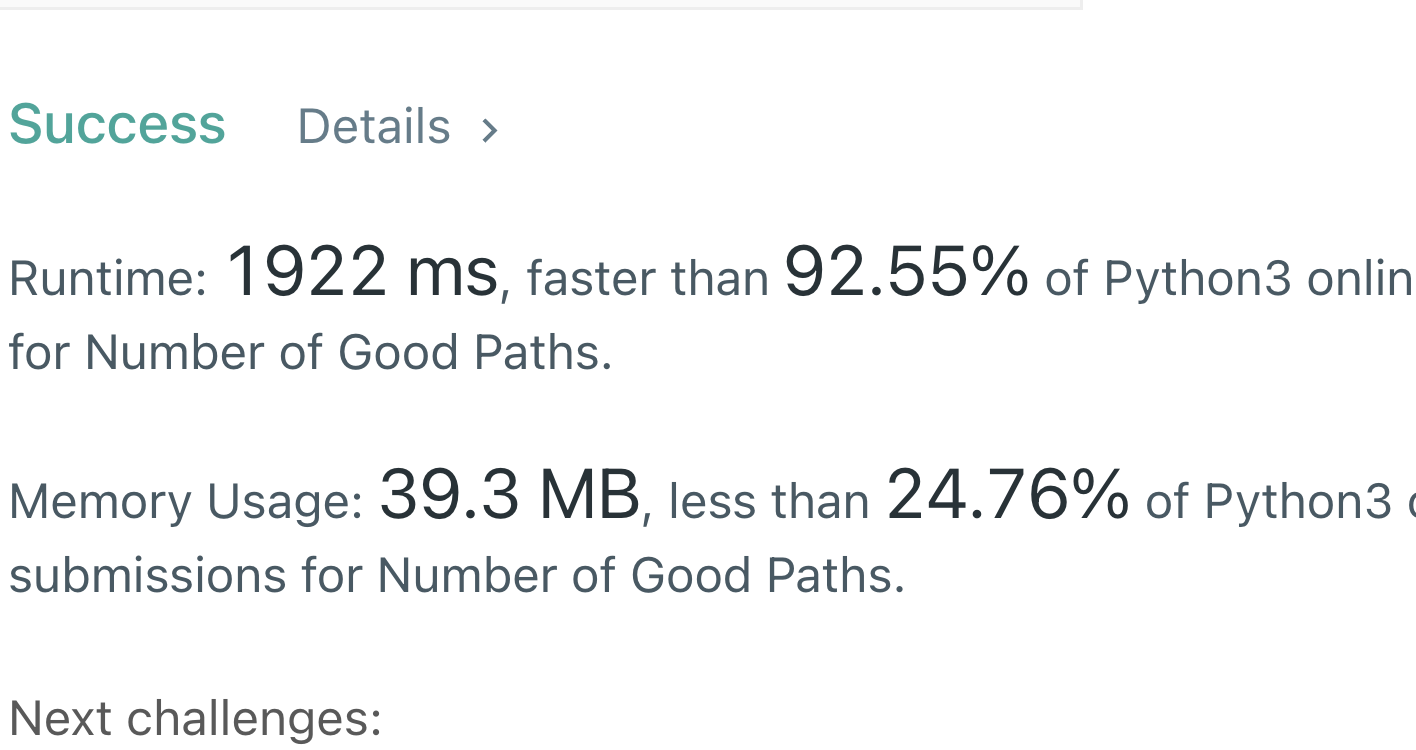 answer : 정답값을 담는 변수다. len(vals) 그러니까 노드 개수로 초기화한다. single node는 그자체로 하나의 good path를 형성하니까 미리 추가해두고 시작하는거다.