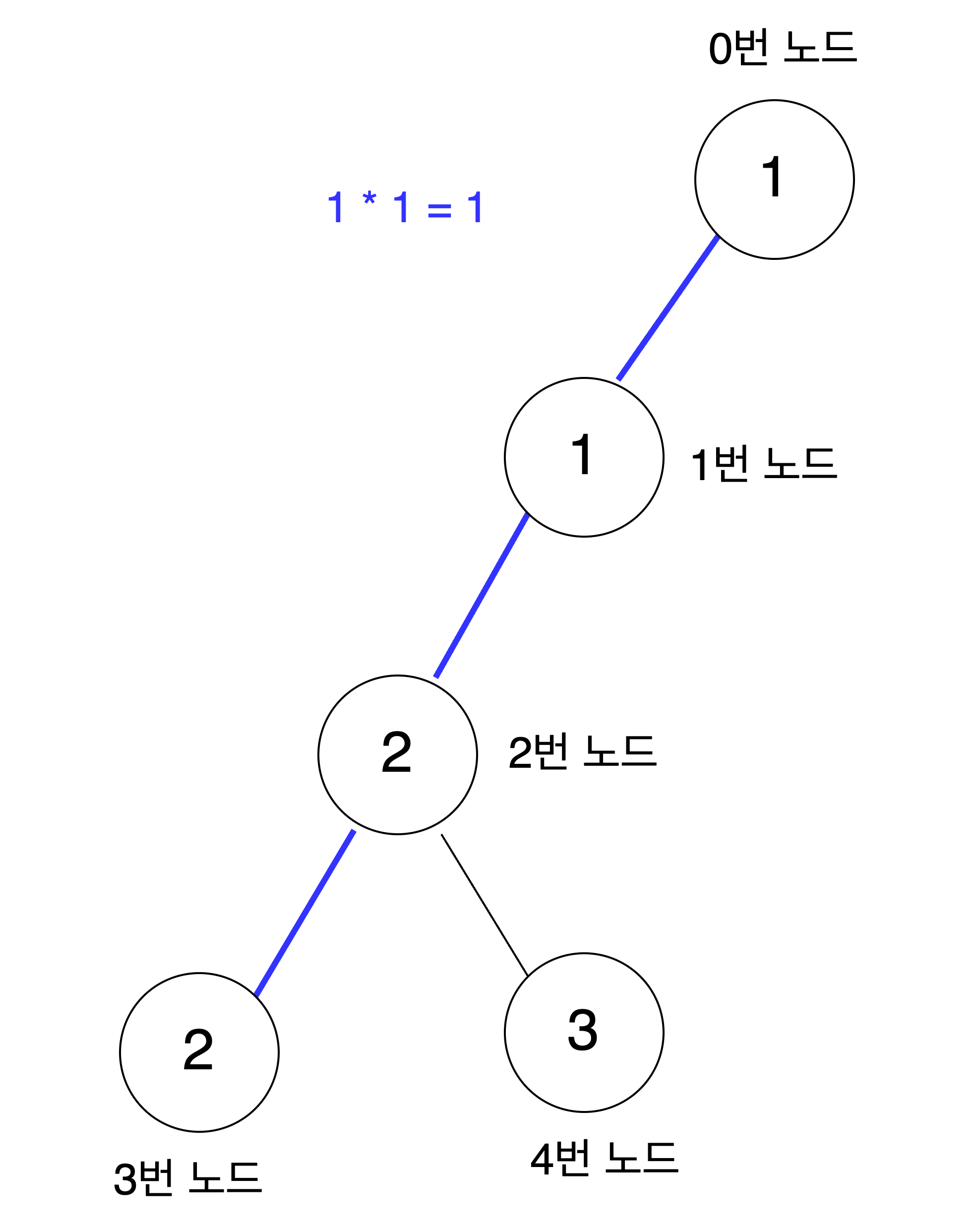 3번 트리에는 2가 1개 있고 0-1-2번 노드가 이어진 트리에는 2가 1개 있으니 1*1=1개의 새로운 good path가 추가된다.