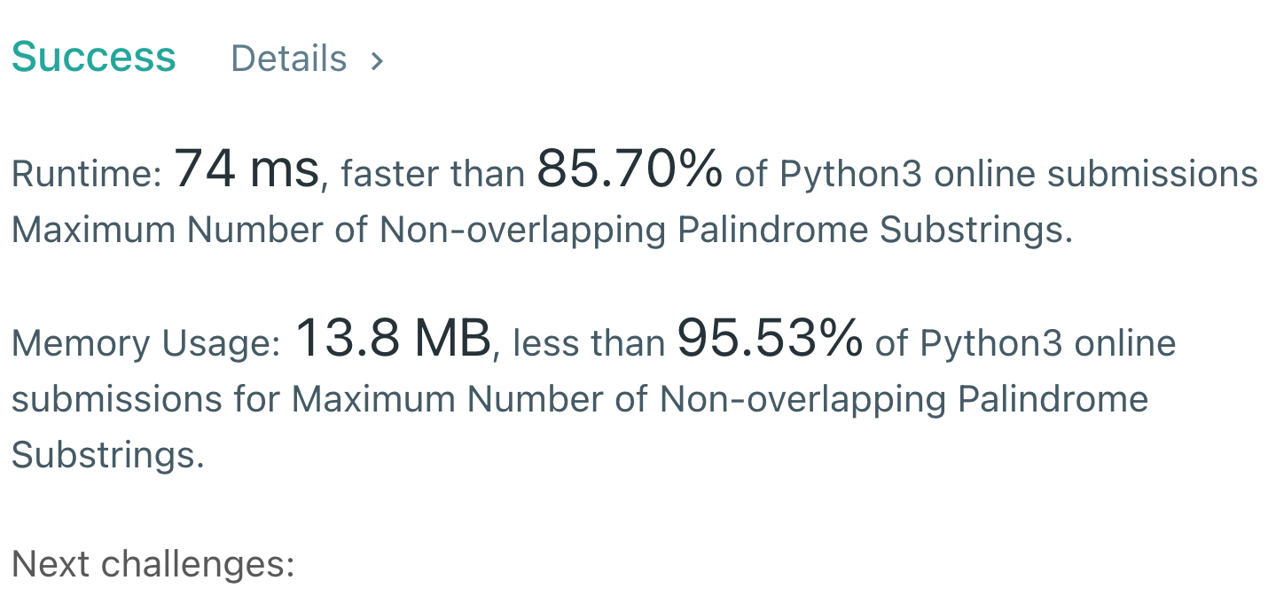 https://leetcode.com/problems/maximum-number-of-non-overlapping-palindrome-substrings/